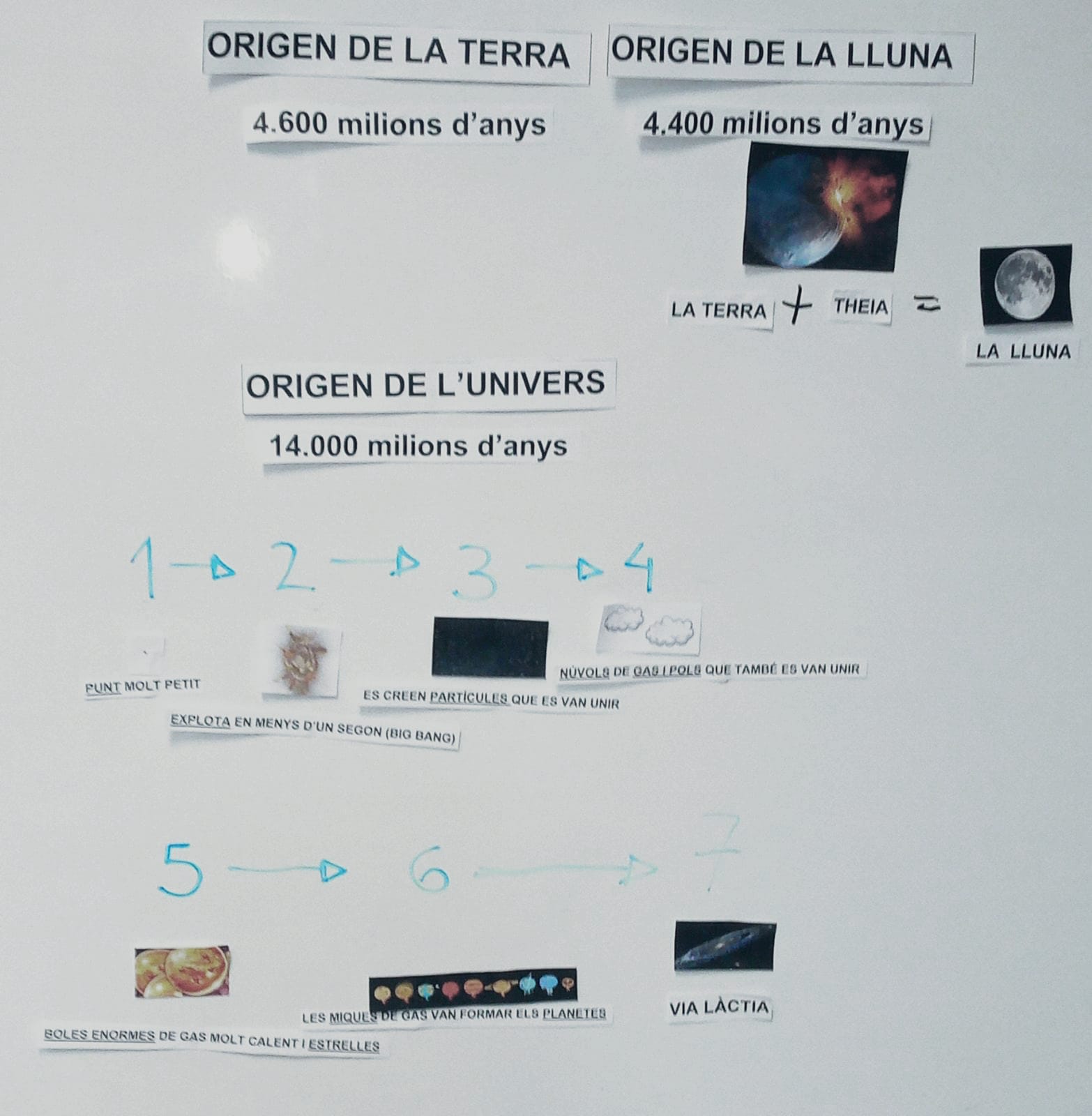 Tenen l'objectiu de reforçar aquells continguts que no havien quedat clars o millorar-los. Vaig anar llançant preguntes i entre tots varen construir aquest mapa sobre l'origen de l'Univers, de la Terra i de la Lluna.