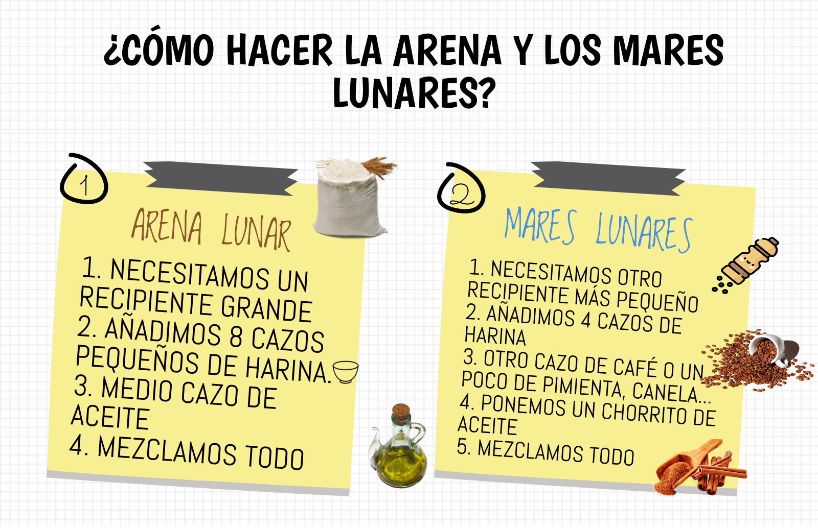 He creat una recepta per poder fer l'arena lunar de la maqueta anterior (Llengua castellana)